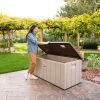 Need a more convenient place to store items around your yard? Lifetime’s Deck Boxes are the perfect way to expand your storage and get better access to items you use regularly around your yard. Whether you have gardening tools, lawn equipment, yard games, or even outdoor seat cushions, the Deck Box makes them easy to store and find when needed. The Rough Cut Series features a wood grain texture and rough-cut finish that provides the natural look and feel of wood without the maintenance of painting or staining.