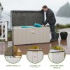 It is durable, UV-protected, and weather resistant to ensure your belongings have years of protection. The lid is lockable (lock not included) to provide even greater security and has a controlled spring-hinge for easy opening and closing. It has molded side handles for easy transport making it easy to move around your yard or patio and it is even sturdy enough to be used as a bench. The Lifetime Deck Box blends durability, convenience and style to create a versatile storage solution.