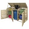 The Rowlinson Singe Bin Store With Double Box Store provides functional, yet attractive storage for essential, yet unattractive garden items. Perfectly sized to hide away one standard sized wheelie bin, the Bin Store features lifting lid with chains that attach to the bin lids to provide easy access, whilst the attached double Box Store provides ample storage for recycling boxes, with height adjustable shelves for extra practicality. Opening front doors provide quick and easy removal when due for collection. Constructed from pressure treated timber to help prevent rot, and supplied in its natural finish which can be painted or stained to suit the style of your outdoor space – transforming a necessary yet unsightly garden essential.