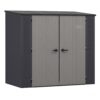 The Suncast Columbia Shed 7×4 blends function with style. Featuring double doors with robust metal hinges and two-point locking system, offering both easy access as well as security. A useful shelf that spans the width of the building is also included, enhancing your organisation options even further. The durable metal reinforced multi-wall resin construction provides all weather storage, keeping your garden valuables protected all year round.