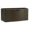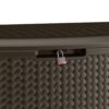 Store away your furniture cushions, patio accessories and garden supplies quickly and easily with the Suncast Minnesota 469L Storage Box. The lift up lid allows simple access to the 469 litres of storage space, and can double up as extra garden seating, whilst the low maintenance all weather multi-wall resin construction ensures strength, stability and protection from UV and water. Supplied in a java brown with an attractive wicker pattern, the Minnesota will be a practical and stylish storage solution.