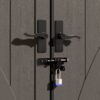 - Upper And Lower Metal Latches Keep Doors Closed And In Place